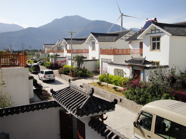 ?、扇恳徽毡诹餍杏谠颇洗罄砦∩降鹊匾蛥^(qū)。主房順山勢依山而建,兩側耳房較低,再加一照壁,為土木結構的組合建筑。多數(shù)為草房,少數(shù)為瓦房,有帶廈和不帶廈兩種。房形有實心房、空心房;吊廈、鸚哥房用木板搭成踩樓。主房高于耳房,主次分明,布局協(xié)調(diào)。前面垂檐,形成前出廊的格局,以一排柱子為主的屋架承重,四柱落地,左右后三方用土基墻圍護,前面及中央用木板為隔。主房山墻到頂,屋面挑出。