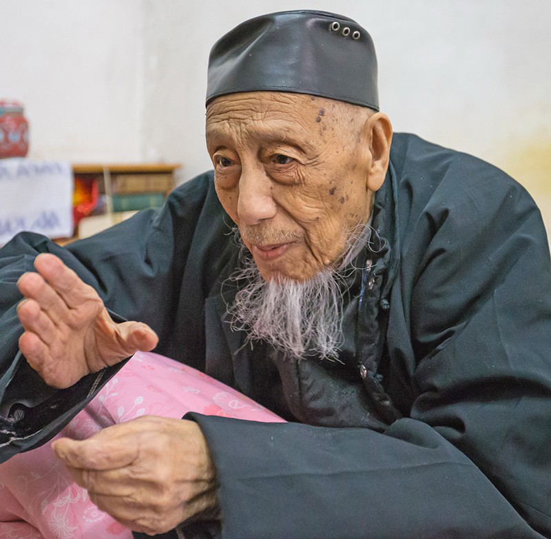 離這里不遠(yuǎn)的回民街深處一座陳舊的院落里,住著百歲老阿訇李殿君老人。老人已經(jīng)101歲,除了耳朵眼睛不太好,身板硬朗,思維清晰,說(shuō)話聲音洪亮。聽(tīng)到我們來(lái)探望,他起身坐起,打開(kāi)了話匣子。