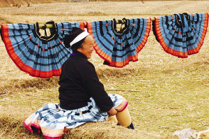 晾曬盛景。白褲瑤女人衣上的神秘之藍(lán),就是這樣經(jīng)過蠟染晾曬而成的