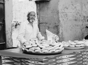 維吾爾老人很會打馕,這又是小城的另一項營生。原先住在農(nóng)村,大家都是用自己的馕坑來打馕,打一次夠一個星期食用。進了城,馕坑沒了,主婦們用烤箱烤了幾次,總覺得少了那么一點味道。于是,小城里出現(xiàn)了幾個打馕人,在馕坑里打好馕,每日售賣。