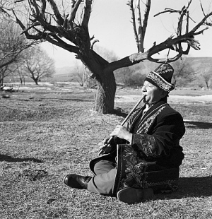 打聽到新疆阿勒泰市阿勒尕特鄉(xiāng)阿克希村79歲高齡的老人巴依薩勒·乃比還可以吹奏和制作哈薩克族樂(lè)器斯布孜...