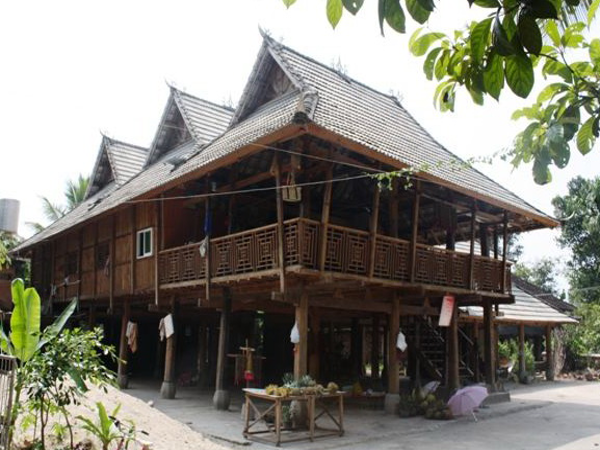 竹樓高出地面,具有防潮防水防震的特點(diǎn)。竹樓為四方形,樓內(nèi)四面通風(fēng),夏天涼爽,冬天暖和。傣家人喜歡在竹樓周圍載鳳尾竹、檳榔、芒果、香蕉等,使村寨充滿詩情畫意。