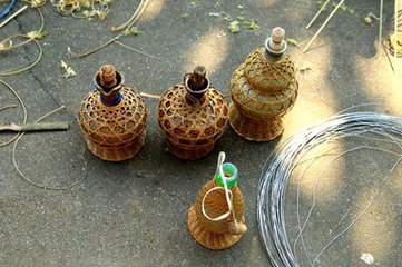 傣族竹編歷史悠久,制作精美,品種豐富,它與傣族人家生活息息相關,是了解傣族文化不能缺少的一部分。對于傣族竹編來講,以編織工藝不同,可以把傣族竹編分為薄篾層編織出平面圖形的平面竹編;用橫截面為矩形的竹絲編織立體造型的立體竹編;將平面竹編和立體竹編編織工藝糅合在一起,編制成既有平面質感又有立體形狀的混合竹編。傣族竹編是藝術創(chuàng)作和藝術再創(chuàng)作,竹編工藝品可分為粗絲工藝品和細絲工藝品。粗絲竹編工藝品主要有茶杯、糖缸、飯盒、檳榔盒、茶葉罐等,細絲竹編工藝品主要有竹包手袋、挎包和帽子等,它們集實用和觀賞性于一體。例如傣族的“芭蘿”,“芭蘿”是傣族,是一種掛在腰間的竹簍?!鞍盘}”編織精巧,美觀實用,不僅是生產、生活用具,還是精致的裝飾品,還是傣族青年表達愛情的傳遞物。