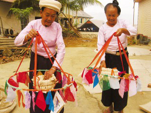 關于孔明燈的制作工藝,現(xiàn)在的年輕人掌握的已經(jīng)不多了,主要還是靠老人。景洪市嘎灑鎮(zhèn)曼回索村60多歲的民間手工藝人巖妞就是做孔明燈很有名氣的老人。巖妞制作孔明燈已經(jīng)有20多年了,他做的孔明燈飛得高,還能帶著鞭炮在空中啪啪炸響,增添了節(jié)日氣氛。在今年4月13日傣歷1374年新年節(jié)(潑水節(jié))來臨之際,巖妞忙得不亦樂乎,前來找他定做孔明燈的人絡繹不絕。