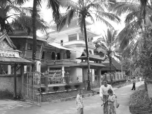 覺悟的菩提樹下,是橙色的佛寺,小和尚攤開構(gòu)紙抄寫的經(jīng)書,輕輕誦讀,構(gòu)樹婆娑,掛滿鳥語。