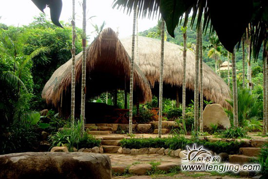 黎族傳統(tǒng)民居是用藤條、樹(shù)枝、木棍扎制屋架,茅草覆頂,以藤條或竹做地板,離地約半公尺左右。屋檐接地,檐墻合一,遠(yuǎn)看像倒扣的船,因而被稱為船形屋。