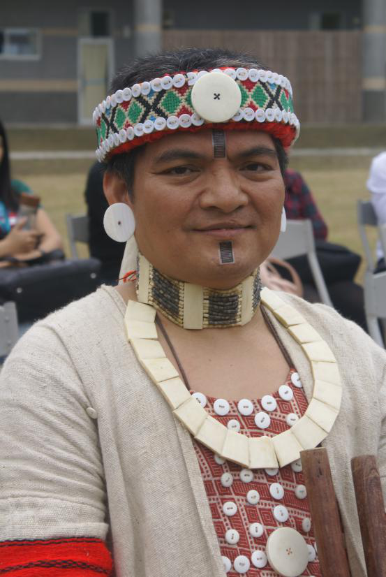 高山族男子的傳統(tǒng)服飾有前遮片、腹袋、后敞褲和丁字帶等。前遮片曾是部分族群男子唯一下裝,多為黑色,對折或三疊后以腰帶綁于小腹前部;腹袋由大方巾對折交叉掛于頸垂于腹,內(nèi)可裝物,亦可遮羞;后敞褲是兩塊長方形布料,僅在腰至胯中央部分縫合,以腰帶和小腿處的系帶綁在身上,正面看形如普通長褲,但后面敞開。丁字帶是雅美人男子特有裝束,用白色棉布纏繞下體,形如“丁”字,部分泰雅和阿美人男子也穿丁字帶。