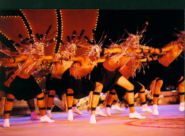 高山族歌舞有一個(gè)共同點(diǎn):隨著歌唱的節(jié)奏,眾人交叉牽手或拉手,組成各種隊(duì)形;要么就是伴著歌唱,眾人彼此搭肩,組成圓形。舞蹈很少出現(xiàn)樂(lè)器伴奏、獨(dú)舞、或?yàn)楦璩槲璧膱?chǎng)景。往往都是集體參與舞動(dòng)、男女各一邊,隨著歌唱而加入各種舞步。其歌舞講究自然。動(dòng)作有走步、踏、蹬、踏點(diǎn)、跳踏、跳擦、搖、滑、踏提、踮步、跳并步、涮、交躥跳步,身體的屈、伸、俯、仰,振動(dòng)雙臂等,變化各種姿式,依不同節(jié)奏與速度的調(diào)節(jié),合于歌聲,組合成舞蹈。以舞蹈禳災(zāi),除祟、祓病、安鬼、溝通祖靈或聯(lián)歡自?shī)省?/p>