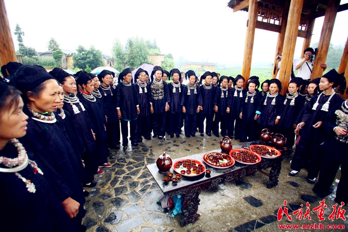 熱情洋溢的水族村寨擺上攔路酒迎接客人 引自民族畫報(bào)