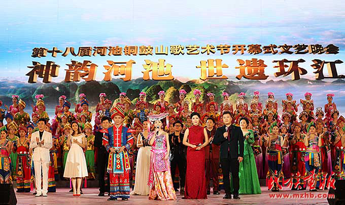 環(huán)江毛南族自治縣舉辦“神韻河池,世遺環(huán)江”第十八屆河池銅鼓山歌藝術(shù)節(jié)開(kāi)幕式文藝晚會(huì)