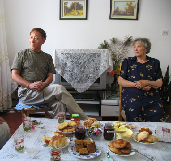 到俄羅斯族人家中作客或辦事,進(jìn)屋要敲門,得到允許才能入內(nèi),進(jìn)屋要脫帽,坐在主人讓給的位子上,不能坐床,坐床認(rèn)為是很不禮貌的行為。來客不得隨便吸煙,吸煙須經(jīng)主人同意。俄羅斯人最隆重的傳統(tǒng)禮節(jié)是用面包和鹽迎接客人,象征著友誼和善意。來客須用刀子切下一塊面包沾少許鹽吃下后方可進(jìn)屋。這種禮節(jié)從前只用于迎接貴賓和新娘,現(xiàn)在也用于一般社交場合。