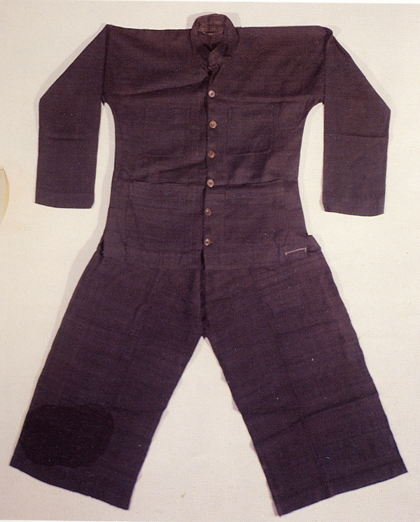 現(xiàn)今所能考證,顯示出傳統(tǒng)京族人在日常生產(chǎn)生活中穿著打扮都較為灑脫。京族男子的服裝,大多是無領(lǐng)、無扣、袒胸、窄肩的上衣,寬而長的褲子。男衣衫長過膝蓋,顏色用淺青、淺藍(lán)或淺棕三種;褲子習(xí)慣穿黑色,既寬又長;其褲襠見長,長度幾乎是褲長的三分之二。京族男性并不用服飾來展現(xiàn)自己的魅力或者身份,許多京族男性更加鐘情于腰帶,以此來表明自身的身份,以腰帶的多少來顯示自己的富?;蚰芨?。所以,腰帶是京族男性最看重的裝飾物。腰帶越多,越能顯示自己。