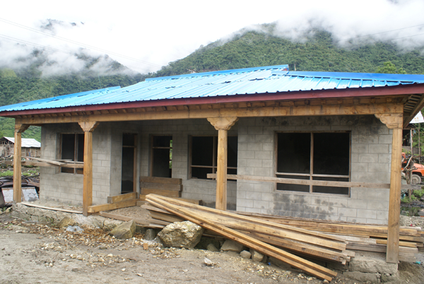 門巴地區(qū)的房屋一般采用石頭或木材壘砌,在錯那縣勒布區(qū),住宅一般是石砌雕房,房高而堅(jiān)固,房屋主體呈四方形,石砌的四周墻壁基寬,屋頂為人字形雙斜面的薄板瓦上壓著石塊。勒布門巴民族鄉(xiāng)及下游邦金一帶門巴族則用竹篾編制的席子蓋房頂,用木板接邊后再壓石塊。