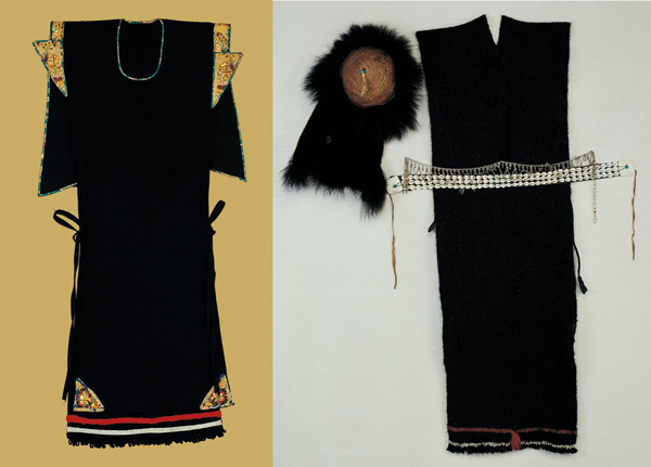 珞巴族的民族服飾已列入國家級(jí)非物質(zhì)文化遺產(chǎn)名錄。圖為珞巴族民國時(shí)期貫頭式氌氌女服與男服,中央民族大學(xué)民族博物館館藏。