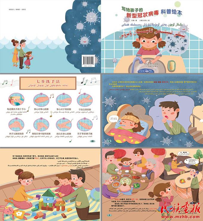 喀什維吾爾文出版社聯(lián)合出版的《寫(xiě)給孩子的新型冠狀病毒科普繪本》(漢維對(duì)照版、電子版)。