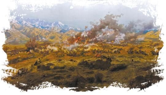 中國(guó)工農(nóng)紅軍西路軍紀(jì)念館內(nèi)復(fù)原當(dāng)年戰(zhàn)斗場(chǎng)景的油畫。賈泓 鄭思哲攝