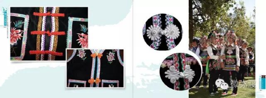 “羅羅潑支”男女服飾的特點(diǎn):“羅羅潑”男子服飾與“迷撒潑”相差無(wú)幾,一般不戴白頭巾。但是婦女的服飾相差卻很大,明顯保留著古樸高雅的南詔遺風(fēng)。頭飾由桂花、包頭、飄帶、大墜子、蜜蜂墜、芝麻鈴組成。桂花墊子在裱布上蒙黑色面料,中間訂有銀飾。包頭以黑色為主,長(zhǎng)約2米,后鏈系于包頭,鏈子為銀制。飄帶長(zhǎng)約4尺,黑色留花邊,兩頭訂英蘇。包頭還系有大墜子、蜜蜂墜各一對(duì),芝麻鈴20個(gè)。領(lǐng)合由裱布黑色面料上訂芝麻玲20個(gè)圍在脖子上。圍腰的前胸部,由領(lǐng)口至腹部,左右各垂掛一條綴有串珠、針筒、響篾(口弦)一類飾品和生活用品的銀質(zhì)項(xiàng)鏈。人一走動(dòng),全身的小蘇鈴就響,聲音悅耳動(dòng)聽(tīng),形象美觀大方。額頭前還圍有一塊翠綠色的“桂花綁”,綁上釘有銀質(zhì)小泡泡200多顆,羅羅潑支婦女的服飾彰顯華麗之美。