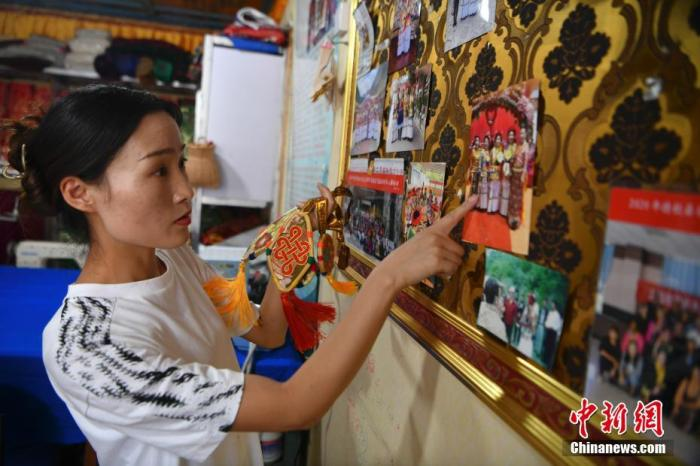 7月22日,提美的女兒邊宗向記者介紹她制作的配飾。 中新社記者 劉冉陽(yáng) 攝