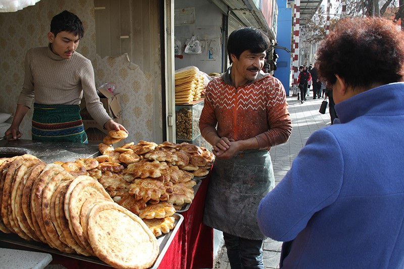 他的話里有著對這座城市的感情。雖然工作很累,但他們有很多朋友?!斑@里有很多上大學的維吾爾族大學生,還有在這里做小生意的人,也有回族和漢族朋友?!辟I麥提·沙烏提和阿吉拇提都沒有結(jié)婚,但他們都打算把未來的妻子帶到這里,像他們的老板一樣,在這座城市安家。買麥提·沙烏提沒有去過其他大城市,但他有一個理想:結(jié)婚時,帶著妻子到上海、廣州、北京等大城市走一圈。再干一年,他準備自己開個店當老板。