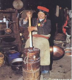 藏族生活在號(hào)稱“地球第三極”的青藏高原上,高寒的高原氣候,嚴(yán)酷的生存環(huán)境,造就了藏民族勇敢剛毅的民族個(gè)性,也形成了藏民族獨(dú)具高原特色的飲食文化,藏鄉(xiāng)的酥油茶便是其中一朵奇葩。酥油茶是藏鄉(xiāng)群眾日常生活所必需的一種飲料,也是藏族人民待客、禮儀、祭祀等活動(dòng)不可或缺的用品,極具民族特色和文化內(nèi)涵。剛進(jìn)藏的漢族干部,要適應(yīng)高原環(huán)境,首先要過生活關(guān),其中重要的一條就是能不能喝酥油茶。顧名思義,酥油茶由酥油、茶和食鹽三種原料做成。