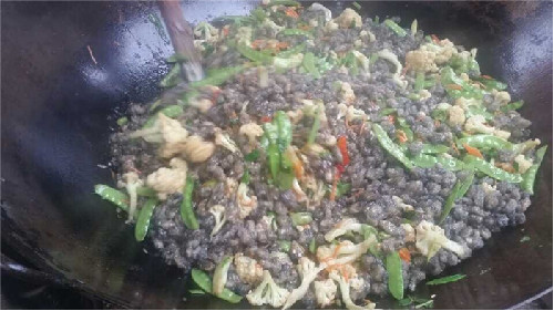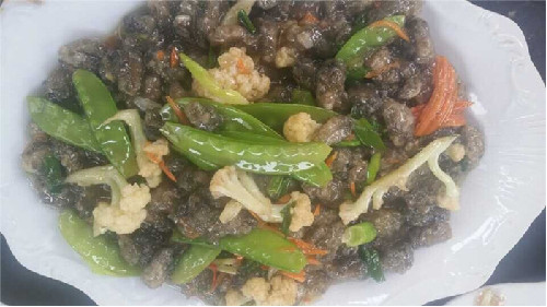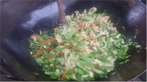 烹制蚵柳,先要挑選好個(gè)肥形大的鮮蚵,用心幾遍洗凈,再用篩細(xì)的地瓜粉薄薄拌勻,務(wù)求每只蚵仔獨(dú)立成團(tuán),再兜在漏勺里到滾開(kāi)的水里焯一下即起來(lái),再攤放有竹篩簸里晾干瀝水一個(gè)晚上。第二天中午烹制,先把油燒熱,倒入生姜末過(guò)油,再依次倒入花菜、荷蘭豆、紅蘿卜絲、芫荽等“菜腳”與鹽、雞粉、料酒、蠔油、胡椒粉、醋等佐料一并翻炒,菜蔬生汁,試嘗咸淡,再倒入已備好的蚵仔團(tuán)翻炒,只需幾下,便已熟透,即可裝盤。
