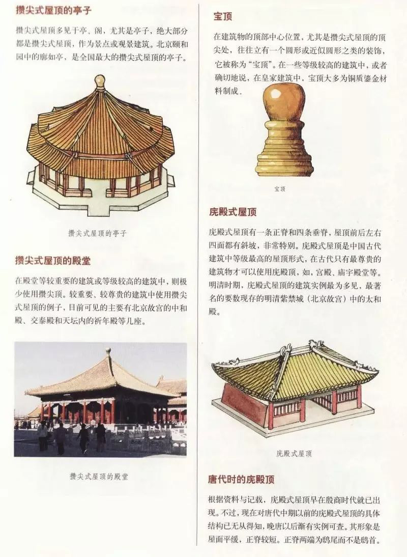 中國古代建筑屋頂不僅樣式多,而且組成部分也有好幾種,主要由屋面、屋脊等部分組成,而且有嚴(yán)格的等級(jí)制度。