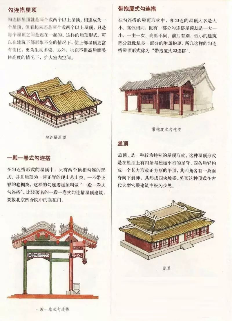 中國古建筑屋頂千變?nèi)f化,瑰麗多姿,不同的屋頂相互組合、穿插,又會(huì)形成不同的屋頂形式。