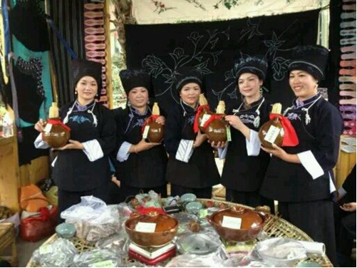 貴州惠水長安布依族是好客的民族,他們常用酒來表達自己的好客、無私、友好、熱情,但敬客酒的習俗又依村寨不同,形式和內容也不相同。布依族敬客,先由男主人向客人敬酒,每人必須先喝兩杯,寓意“ 你是用兩只腳走來的” ,這兩杯酒都要一飲而盡,第三杯開始,主人便可隨意。待到一定時候,其主人便同姑娘、媳婦們一起上陣,手持酒海(盛酒的土缽)、酒碗站立客人身后以歌敬酒。先從長者開始敬完一輪,再反方向敬一輪。有的好客者,為挽留客人住下,婦女們就會選擇一“ 關鍵” 客人,力促將其灌醉,使得“ 群龍無首” ,只好乖乖留下。布依人家真情可謂“ 酒如其人” ,令人陶醉。