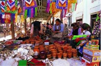 西藏的地勢西北高而東南低,西北寒冷而東南溫和,西北以牧業(yè)為主,東南以農業(yè)為本,西北以皮袍御寒,東南多以氆氌裝遮體。皮袍和氆氌裝質地不同,但都結構肥大,袖口寬敞,穿著自如,白天陽光充足,氣溫高時,可脫袖露臂,調節(jié)體溫,夜間可解帶和衣而眠。皮袍和氆氌裝一般均用腰帶,男子穿時提起下擺與膝平齊,腰帶一束,懷里形成空囊,里面可裝不少隨身用品。只要出門,懷中一般必有一件不可缺少的東西,就是木碗。一般的木碗價廉物美,平民百姓承受的起,更重要的原因還有與不共碗習俗有關。