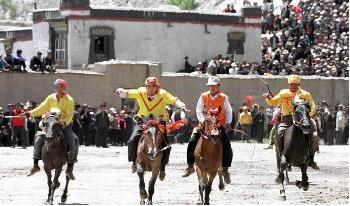 藏歷4月10日到28日,是江孜傳統(tǒng)的節(jié)日—達(dá)瑪節(jié),藏語(yǔ)意為跑馬射箭。據(jù)傳說(shuō)江孜法王繞丹貢桑帕巴桑布,是薩迦王朝的內(nèi)務(wù)大臣,又是江孜法王,在群眾中頗有威望。帕巴白去世后,他的弟子每年做祭祀,以示紀(jì)念。后因戰(zhàn)亂,祭祀中斷。至藏歷火鼠年(公元1408年)繞丹貢桑帕任江孜法王,遵其父貢桑帕的遺囑,恢復(fù)祭祀。這一年藏歷4月10日至4月27日,繞丹貢桑帕為其祖父念經(jīng)祭祀,直到28日,開(kāi)始進(jìn)行娛樂(lè)活動(dòng)。內(nèi)容主要是曬唐卡畫(huà)、宗教文藝活動(dòng)等。除此之外,還有角力、跑馬、拋石頭等娛樂(lè)活動(dòng)。這些活動(dòng),全由法王的部下、兵丁、傭人承辦。從這年開(kāi)始,固定這段時(shí)間為每年一度的祭祀盛典節(jié)日。到了扎西繞丹帕(公元1447年)統(tǒng)轄江孜的時(shí)候,娛樂(lè)活動(dòng)更為豐富,除上述內(nèi)容外,還增加了跑馬射箭。于是流行為盛大的江孜達(dá)瑪節(jié)。
