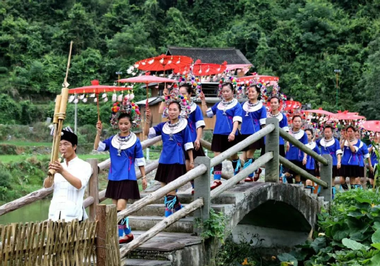 過年期間,各家各戶姓氏輪流過節(jié),親朋好友都會集中前往,最后到鼓樓坪唱歌跳舞慶祝侗年。——程陽八寨景區(qū)