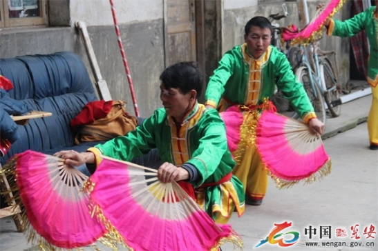 “燈夾戲”,即花燈夾川戲的一種藝術(shù)表演形式,是花燈與川戲饒有新意的巧妙組合,是一種匠心獨運的嫁接藝術(shù)。主要流傳于我縣平定營鎮(zhèn)。燈夾戲除了以其精湛的表演形式慶祝豐收景象及生意興隆外,還富有濃厚的宗教色彩。正月初九起燈時,所有戲班子成員在班主的帶領(lǐng)下,身著戲裝,跪拜在花燈菩薩(牌燈)面前,插香點燭、燒錢化紙,待供祭完畢后方可演出。正月十五是“化燈”的日子,戲班子成員要敲鑼打鼓,重新燃燭燒紙,站成一排恭敬祭奉花燈菩薩,然后化燈結(jié)束。