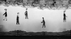 “噔噔蹬蹬鏘鏘鏘……”伴隨著激昂的鑼鼓聲和歡快的二胡聲,皮影戲《黨的十九屆六中全會(huì)精神引領(lǐng)我們向前進(jìn)》開(kāi)始演出(左圖)。