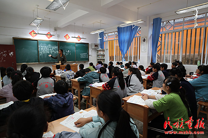 “對(duì)于一個(gè)在北平住慣的人,像我,冬天要是不刮大風(fēng),便覺得是奇跡;濟(jì)南的冬天是沒有風(fēng)聲的?!弊哌M(jìn)學(xué)校初中部,朗朗書聲立即傳入耳中,七年級(jí)一班學(xué)生正在老師的帶領(lǐng)下大聲朗讀我國著名作家、劇作家、小說家老舍創(chuàng)作的散文《濟(jì)南的冬天》。獨(dú)龍江九年一貫制學(xué)校校長楊四洋對(duì)記者說:“習(xí)近平總書記曾深刻指出:少數(shù)民族學(xué)好國家通用語言,對(duì)就業(yè)、接受現(xiàn)代科學(xué)文化知識(shí)、融入社會(huì)都有利。所以我們學(xué)校從成立之初就開始推行國家通用語言文字教育,如今每一個(gè)在校學(xué)生都能講出一口流利的普通話。獨(dú)龍族聚居地地處深山峽谷,自然環(huán)境惡劣。學(xué)好國家通用語言文字對(duì)我們的孩子尤為重要,這樣才能更好地建立與外界溝通的橋梁。”