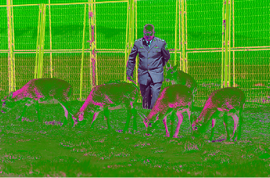 在可可西里國(guó)家級(jí)自然保護(hù)區(qū)索南達(dá)杰保護(hù)站,站長(zhǎng)趙新錄與藏羚羊在一起(9月28日攝)。新華社記者 李占軼 攝
