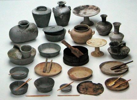 彌生時代的名稱,源自1884年東京市本鄉(xiāng)彌生町“彌生陶器”的發(fā)現(xiàn)。彌生陶器與繩紋陶器截然不同,為素面,灰色。日本人認(rèn)為彌生陶器是“渡來人”制造的。“渡來人”是中國大陸通過朝鮮半島而來,他們帶來了陶器的制作技術(shù)。彌生陶器為深釜器,以甕形器、缽形器、高腳杯(豆形器)為主(圖五)。
