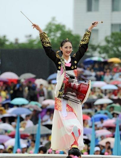 古代的長鼓,用獐皮做左邊的厚鼓皮,用狗皮做右邊的薄鼓皮,鼓筒采用木材或多層紙、薄鐵等材料制成。長鼓有沙市6個銅制的龍頭形鉤子,鉤住松緊繩.松緊繩用三股真絲線制成,每只鼓上裝有8全套袖,即用來調(diào)整鼓繩的皮套。長鼓起源于我國的宋代,后來流傳到朝鮮半島,成為朝鮮民族音樂的主要打擊樂器。我國東北朝鮮族聚居的地方,長鼓在朝鮮族音樂和舞蹈中起重要作用。長鼓的右邊用一根飾彩穗的竹條敲,左邊用手,右邊聲高左邊聲低,能敲擊出豐富多彩的節(jié)奏,著名的朝鮮族長鼓,在全世界聞名,藝術水平相當高,真正代表了能歌善舞的朝鮮民族的藝術特色。