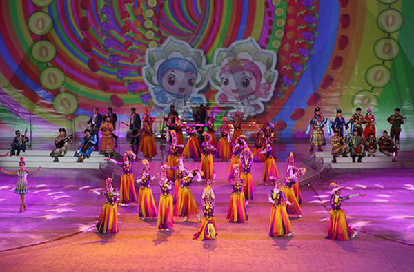 2016年1月20日,為期11天的第十三屆全國冬季運(yùn)動(dòng)會在烏魯木齊冰上運(yùn)動(dòng)中心速滑館拉開大幕。開幕式由體育儀式、文體表演和點(diǎn)燃主火炬塔三個(gè)部分組成。在文體表演章節(jié),承擔(dān)本次開幕式文體表演與伴舞任務(wù)的新疆藝術(shù)學(xué)院200名學(xué)生與來自新疆各民族的文藝工作者一起,為觀眾獻(xiàn)上了一臺精心策劃和編排、以“冰雪天山陽光絲路”為主題的精彩表演。參加開幕式文體表演的舞蹈系2014級、2015級學(xué)生,大部分是第一次參加國家級的大型活動(dòng),他們克服嚴(yán)寒,用自己的實(shí)際行動(dòng)為精彩冬運(yùn)會助力添彩
