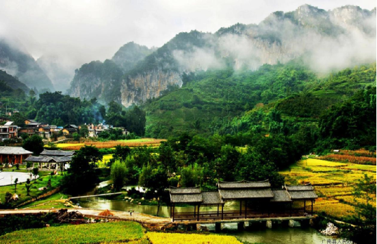 昔日壩美村房屋以落地和半樓居兩種桿欄式風(fēng)格為主,主屋用木板架成,四周用樹枝圍攏,再敷上泥巴、牛糞攔合成的粘土,非常通風(fēng)、保暖,上蓋瓦頂、抱廂、前置涼吧或圍欄,樓上住人,樓下關(guān)牲畜、堆雜物、當(dāng)?shù)貕炎宸Q麻欄樓?!稘h書·地理志》就有壯家“男耕女織”的記載:“男子耕農(nóng),種稻麻,女子蠶??椏儭!鼻О倌陙淼拇汤C技藝,之所以能夠代代相傳,延綿不絕,很大因素緣于它是不少壯族婦女賴以為生的基本技能。村民的食物、衣物、生產(chǎn)工具、生活用具基本上是自己生產(chǎn),寨子中隨處可見轉(zhuǎn)動的水車、獨(dú)木舟、人工石磨、水磨、木碓、水紡織機(jī)、木榨油機(jī)、獨(dú)木風(fēng)箱、木梨粑、木背柴架、木梯、木菜板、木燈架、木三角獨(dú)輪推柴車、竹木水桶、葫蘆酒壺、木儲物器、石缸、石磙等生產(chǎn)生活工具。它們的古樸粗拙樣,凝固了歷史,傳遞著遠(yuǎn)古的文化信息。自2019年3月以來,壩美景區(qū)暫停對外開放進(jìn)行提質(zhì)升級改造。經(jīng)過一年多的建設(shè),一期工程已完成投資4億元,景區(qū)內(nèi)基礎(chǔ)設(shè)施及旅游產(chǎn)品業(yè)態(tài)都有了質(zhì)的提升。以世外桃源壩美景區(qū)為核心,以壯族文化為內(nèi)涵,以稻作田園景觀、普千村、冷熱泉等內(nèi)容為延伸,打造國內(nèi)首個(gè)集田園休閑度假、壯族文化體驗(yàn)、藝術(shù)創(chuàng)意創(chuàng)作、宗教朝圣等多重體驗(yàn)為一體的旅游度假區(qū),將通過改造民居、再造田園、以水為魂等方式打造現(xiàn)實(shí)版的“桃花源”。