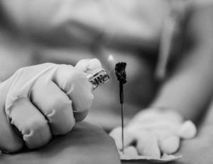 醫(yī)務(wù)人員用蒙醫(yī)傳統(tǒng)療法——火針,為群眾治療。新華社記者 彭源攝