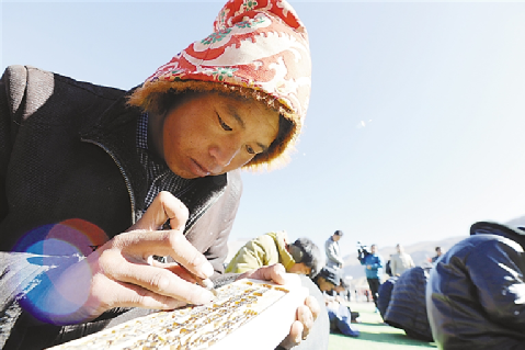普松是著名的“雕刻之鄉(xiāng)”。雕刻在尼木縣普松鄉(xiāng)有著悠久的歷史,是普松鄉(xiāng)群眾世世代代傳承下來的一項(xiàng)古老技藝,作為在全區(qū)享有盛譽(yù)的傳統(tǒng)技藝,雕刻藝人在長年累月的鉆研過程中不斷對其進(jìn)行豐富和發(fā)展。普松雕刻形式多樣,應(yīng)用廣泛,不僅有單一的文字雕刻,還有圖文并茂的圖案;不僅應(yīng)用于藏傳佛教活動,還應(yīng)用于印制經(jīng)幡,西藏很多山口懸掛的經(jīng)幡,都是用普松雕版印制的,在拉薩市場,它們占有90%的份額。(記者 旦增)