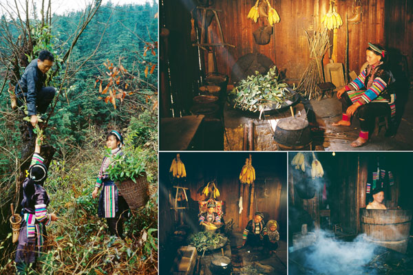 各地藥浴習(xí)俗不同,或每日洗浴,或擇吉日洗浴。由每戶最年長(zhǎng)的男性上山采來(lái)追風(fēng)藤、半邊楓、九龍盤、血藤等中草藥,洗凈,捆成把或切碎放入大鐵鍋中用水煮沸,待煮出藥汁后,撈去藥渣,把煮好的藥水放入專門藥浴的大桶——“龐桶”中。浴者赤身入桶,在保持適宜溫度(一般為38度左右)的藥液中浸泡20-30分鐘。鍋中有煮好的備用藥水,可保證每位藥浴者浴時(shí)的溫度相同。在藥浴中,通過(guò)浸泡,讓藥汁慢慢地滲入人體的毛細(xì)血管、遍及全身,達(dá)到以浴治病的目的。瑤族用藥水洗身,不分男女老幼,全家皆洗,一家人輪流洗,水臟了就換,冷了再加熱。瑤族將傳統(tǒng)禮儀規(guī)范滲透到藥浴治療當(dāng)中,規(guī)矩是:先客后主,先小后大,先老后少,先男后女。