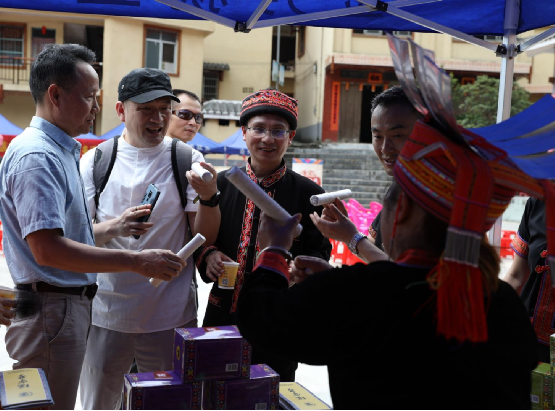 自治區(qū)“非遺”中心領(lǐng)導到瑤族雷火灸銷售攤點了解銷售情況