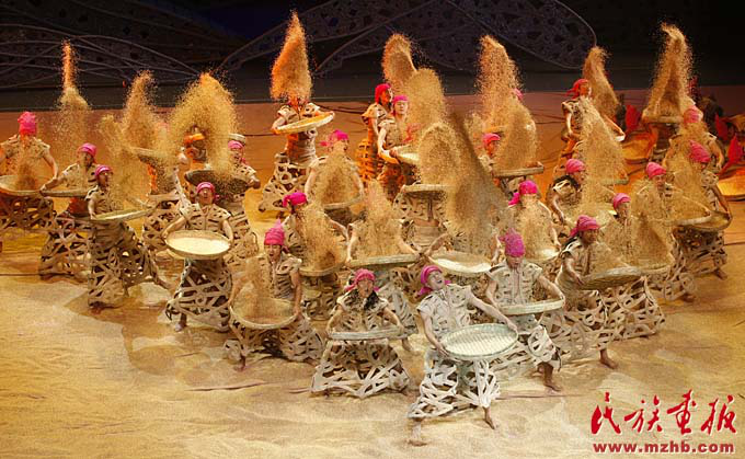 2009年,楊麗萍在《云南映象》的基礎(chǔ)上再創(chuàng)佳作《云南的響聲》。這部被稱為《云南映象》姊妹篇的歌舞集最大的特點(diǎn)就在于,它將鋤頭釘耙、水車石磨、簸箕鐮刀、鍋碗瓢盆等一系列農(nóng)家常用的工具和上百種云南民間樂器搬上舞臺(tái)。繼《云南映象》落戶昆明做長久演出之后,2016年6月起《云南的響聲》也落戶麗江。