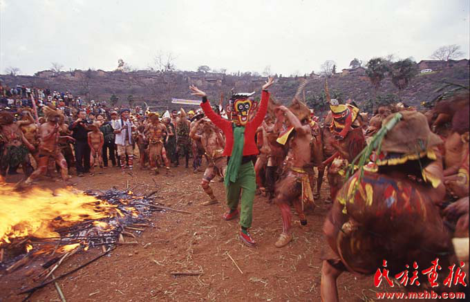 2000年后,楊麗萍將更多的精力投入到云南民族文化的挖掘整理中。圖為她在彝族祭火現(xiàn)場參與表演(民族畫報(bào)資料)