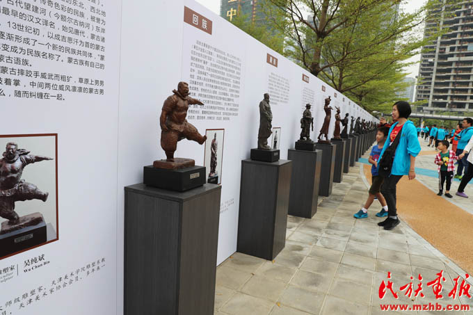 深圳現(xiàn)有少數(shù)民族人口近100萬(wàn),“來(lái)了就是深圳人”的話語(yǔ)深入人心。這是2018年11月在深圳舉辦的“行走的雕塑”活動(dòng)中的少數(shù)民族雕塑展(和勇 攝影)
