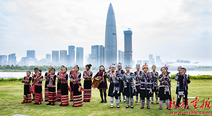 “學(xué)習(xí)是相互的,滋養(yǎng)是雙向的。”深圳“飛越彩虹”公益項(xiàng)目主理人王芳說(shuō),“來(lái)自五湖四海的兄弟姐妹是深圳的建設(shè)者,是改革開放的參與者,我們同他們一起,回望他們的家鄉(xiāng),幫助他們牽掛的地方有所發(fā)展,這是對(duì)改革開放更進(jìn)一步解讀的一種體現(xiàn)?!笔陙?lái),“飛越彩虹”項(xiàng)目秉承“以童聲合唱傳遞民族文化之美”的宗旨,推動(dòng)少數(shù)民族文化的保護(hù)和傳承,已在全國(guó)各民族地區(qū)建立了33個(gè)民族童聲合唱團(tuán),并將越來(lái)越多的少數(shù)民族孩子帶到深圳、北京甚至更大的國(guó)際舞臺(tái)?!皾h族,少數(shù)民族,都是中華民族;邊疆,大城市,都是中國(guó);城市與鄉(xiāng)村,都是家園。中華多民族多元一體、共融共生,我們有著同一個(gè)中國(guó)夢(mèng)?!蓖醴颊f(shuō)。