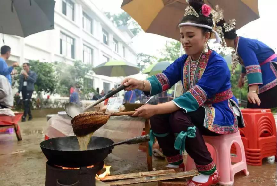 打油茶是侗族特有的一種飲食習(xí)慣和待客禮儀,起源于唐代,侗家油茶用糯米、茶油、茶葉、食鹽等原料精制而成,具有香、酥、甜等特點(diǎn),能提神醒腦助消化,已于2014年列入廣西區(qū)級非遺名錄。