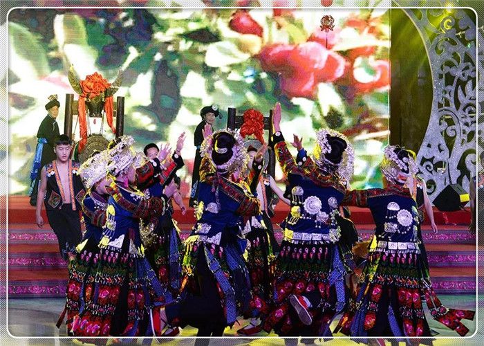 中國苗族網(wǎng)訊 2019年1月19日,由貴州省社科聯(lián)、貴州民族大學指導,貴州省苗學會主辦,貴陽市苗學會、六盤水市苗學會、安順市苗學會、畢節(jié)市苗學會、銅仁市苗學會、黔西南州苗學會、黔東南州苗學會、黔南州苗學會、貴安新區(qū)苗學會、多彩貴州城建設經(jīng)營有限公司共同協(xié)辦的“迎新春-蝶韻楓彩鼓聲來”2019春節(jié)聯(lián)歡晚會,在貴州省貴陽市“多彩貴州城”展示中心隆重舉辦。貴州省9個州市及貴安新區(qū)苗族、布依族、侗族、土家族、彝族、仡佬族、水族、回族、白族、瑤族、壯族、毛南族、蒙古族、仫佬族、羌族、滿族等17個少數(shù)民族載歌載舞歌盛世,歡天喜地迎新春。 應邀出席春晚的領導嘉賓有貴州省人大常委會原副主任、省苗學會老會長楊光林,以及貴州省人大常委會,貴州省社科聯(lián),貴州省民政廳,貴州省政協(xié),貴州民大,貴州省政協(xié),貴州省文化和旅游廳,貴州省總工會,貴州省文聯(lián)、貴州省人大、省委宣傳部、省民政廳,民宗委,社科聯(lián),貴州省八大民族學會的相關領導等應邀出席并觀看演出。 春晚得到了貴州省委宣傳部領導關心,省委常委、省委宣傳部慕德貴部長對晚會專門作出重要批示,要求把春晚打造成一臺“思想性、藝術性、觀賞性統(tǒng)一的文藝晚會,豐富春節(jié)期間群眾性精神文化生活,營造歡樂、喜慶、團結(jié)、祥和的節(jié)日氛圍”。 晚會緊扣“同心共筑中國夢,中華民族一家親”主題,圍繞共同團結(jié)奮斗、共同繁榮發(fā)展主題,繼承和弘揚中華民族優(yōu)秀傳統(tǒng)文化,積極展示貴州少數(shù)民族同胞改革開放40周年來翻天覆地的新變化,用少數(shù)民族原生態(tài)歌舞形式歌頌黨、歌頌祖國、歌頌民族大團結(jié)。春晚節(jié)目,由貴州省各州市國家非遺保護節(jié)目、在中央春晚節(jié)目,由貴州省各州市國家非遺保護節(jié)目、在中央級、省市級比賽中獲獎的各民族原生態(tài)蘆笙舞、錦雞舞、銅鼓舞、板凳舞,苗族飛歌、古歌、大歌、情歌、絕技;民族盛裝走秀;非遺文化展示等26個節(jié)目組成。 晚會由240位貴州各地苗族演員,50位苗族、布依族、侗族、仡佬族、彝族、土家族、回族等17個少數(shù)民族演員,在主持人的開場白介紹中,手持燈花、衣著盛裝在鼓點笙曲中步入會場。 接著,被國內(nèi)外譽為“東方迪斯科”的黔東南州臺江《反排木鼓舞》拉開笙鼓迎春的序幕,雷山國家級非遺節(jié)目《掌坳銅鼓舞》、《錦雞舞》,貴陽市花溪區(qū)《花鼓舞》、貴安新區(qū)原生態(tài)蘆笙舞《花坡韻》、黔南州《鼓龍鼓虎-長衫龍》、兒童舞蹈《跺月亮》、畢節(jié)市納雍縣蘆笙舞《滾山珠》、凱里原生態(tài)合唱《春之歌》、安順留守兒童合唱團《又見桃花開》、金竹樂隊蘆笙組合《酒歌》、銅仁市絕技《紙上飛仙》、黔西南州《板凳舞》等,一個個節(jié)目精彩絕倫、美輪美奐,舞出少數(shù)民族同胞“美起來、笑起來、富起來、強起來”的精神風貌、音容笑貌。最后,貴州省17個世居少數(shù)民族240名演員齊唱《愛我中華》,在“五十六個民族五十六朵花,五十六個兄弟姐妹是一家”的歌聲中把整臺晚會推向高潮,拉下帷幕。 此次春晚民族文化濃厚、明星歌手薈萃、演員陣容龐 此次春晚民族文化濃厚、明星歌手薈萃、演員陣容龐大、節(jié)目精彩絕倫。這些節(jié)目,涵蓋了東部方言、中部方言和西部方言各民族支系。遍及黔東南州、黔西南州、黔南州、貴陽市、安順市、畢節(jié)市、六盤水市、銅仁市和貴安新區(qū)。老藝術家榜香、青年歌手阿幼朵、潘興周、雷艷、楊一方、阿娜丹、歐桑、楊佳茜、楊祖桃、楊思雨、楊廷勇、吳敏成、阿蕾倩、余秋陽、阿依三姐妹、谷阿斯組合、阿依山娃組合等20多名少數(shù)民族歌星紛紛登臺獻藝,演員達300余人。 貴州省人大常委會原副主任、貴州省苗學會老會長楊光林說,春晚的舉辦,有利于提高民族同胞的戰(zhàn)斗力、凝聚力、感召力!春晚牢牢把握了“百姓富、生態(tài)美”兩條底線,通過晚會形式,吹響了少數(shù)民族同胞在黨中央和貴州省委、省政府的堅強領導下,致力于決戰(zhàn)脫貧攻堅,決勝同步小康、實現(xiàn)鄉(xiāng)村振興的號角。是號召大家參與國家實施的“鄉(xiāng)村振興、脫貧攻堅”任務,努力實現(xiàn)貴州人民2020年和全國人民同步實現(xiàn)小康及全國人民正在努力實現(xiàn)的“中國夢”作出貢獻的動員令! 晚會當天,春晚組委會主任、貴州省苗學會常務副會長張榮斌介紹:“迎新春-蝶韻楓彩鼓聲來”2019春節(jié)聯(lián)歡晚會,是推進貴州省委、政府明確提出的“全力打造多彩貴州民族特色文化強省”戰(zhàn)略定位的實際行動;是著力推出民族民間文化精品,提升“山地公園省,多彩貴州風”影響力和美譽度的良好平臺;是增強少數(shù)民族同胞文化自信,打造“山地公園省,多彩貴州風”的靚麗名片和文化品牌;是全省少數(shù)民族同胞新春佳節(jié)的一場文化盛宴。 參加春晚的演員百分之九十來至農(nóng)村,很多來自邊遠山區(qū)。大家認為,春晚要年年辦,希望黨委政府關心支持老百姓辦自己的春晚。通過晚會,挖掘貴州少數(shù)民族優(yōu)秀傳統(tǒng)文化,特別是非遺文化。讓全國人民知道貴州、了解貴州、關心貴州,積極參與到貴州