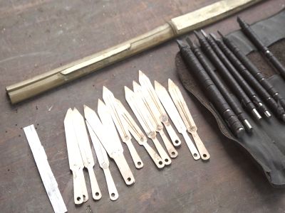 貴州貴陽清鎮(zhèn)市流長鄉(xiāng)腰巖村苗族制作口弦所需材料和工具-銅黃片、竹子、小刀、鑿子